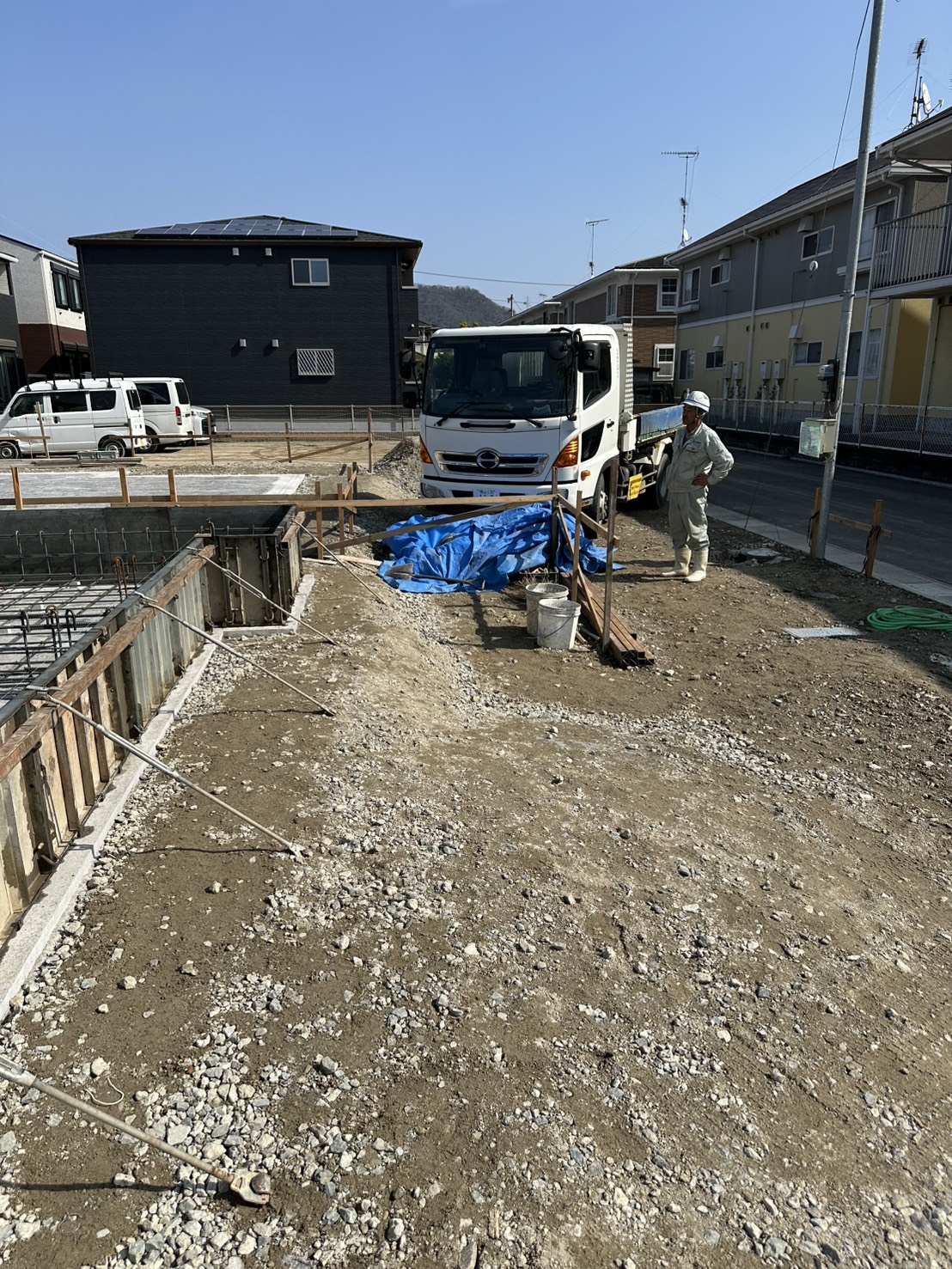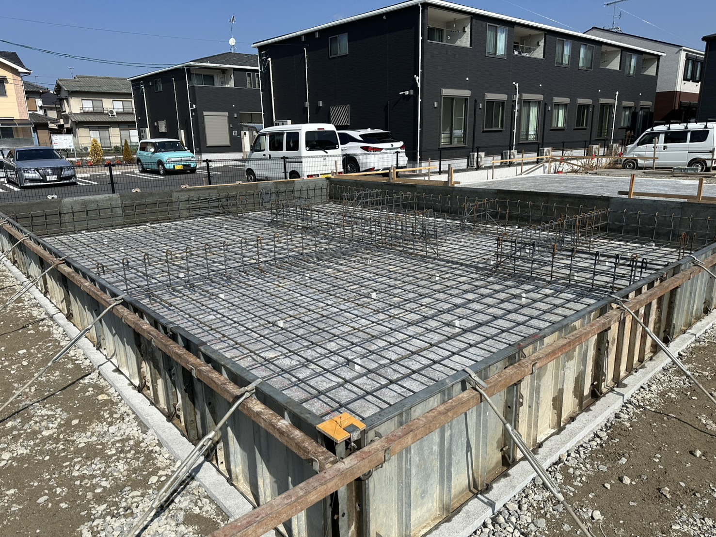 2月初旬、澄み渡る青空のもと、現在施工中の現場にて**「配筋検査」**が行われました!🏠☀️