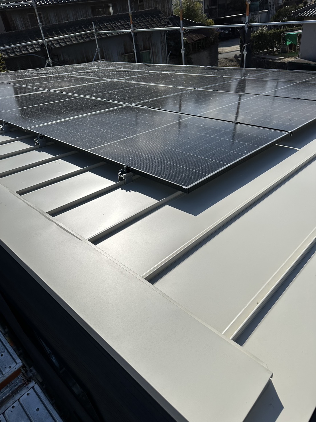 屋根には無料設置の太陽光パネルも搭載され、