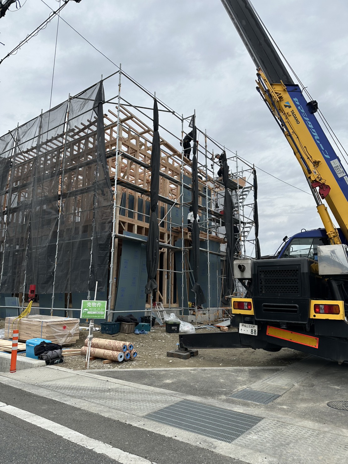 大きなクレーンで次々と柱が組まれていく光景は、いつ見ても圧巻です。