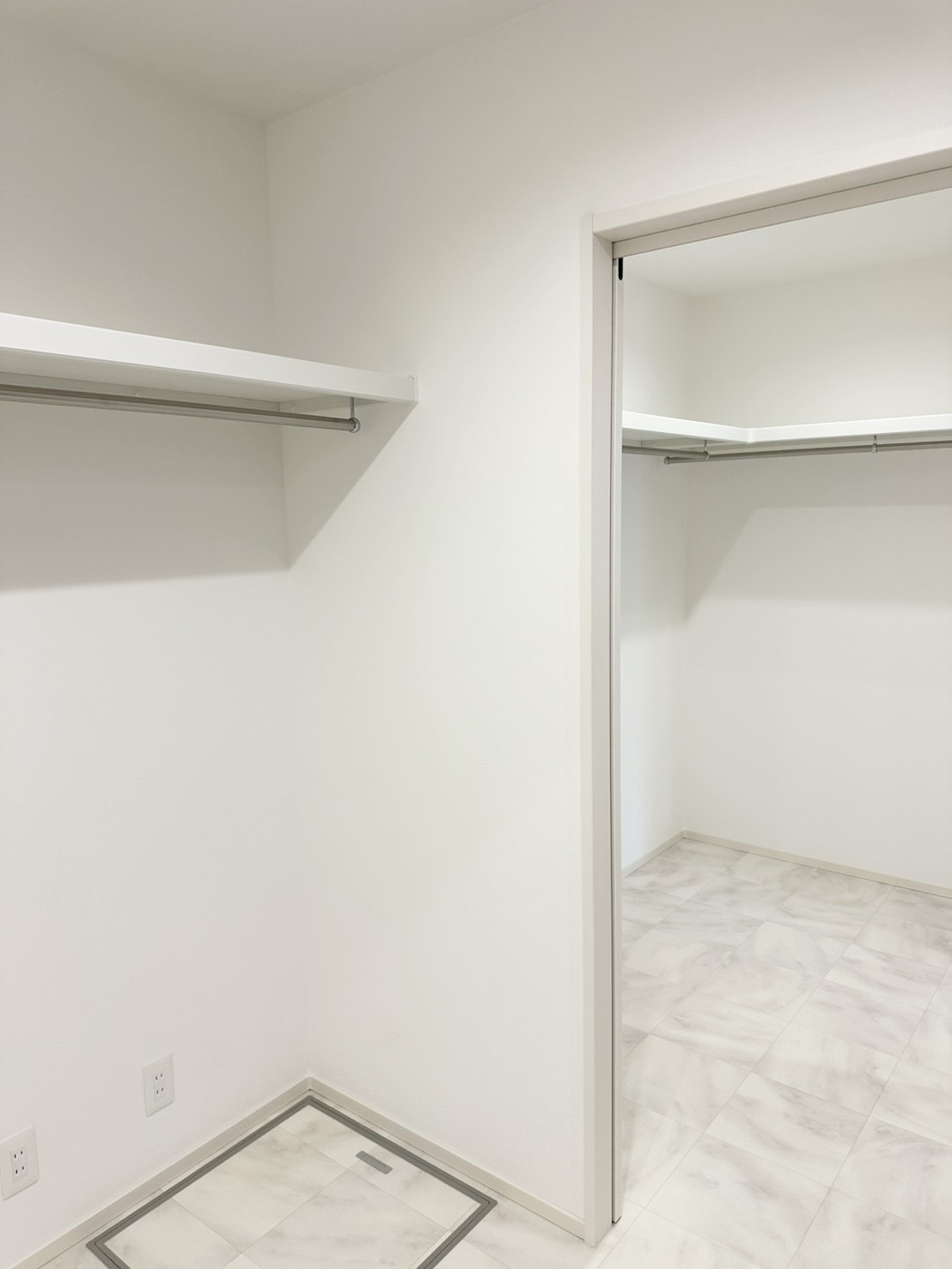 ホテルライクな美しさを保つためには、生活感を隠す工夫が不可欠です。大容量のウォークインクローゼットなど、適材適所の収納を配置することで、スッキリと整った空間をキープ。